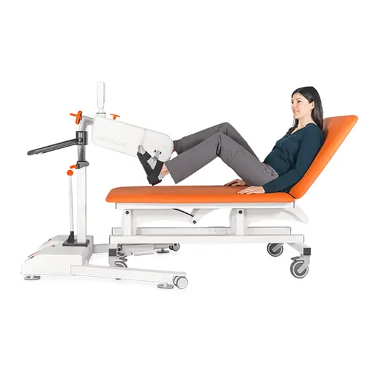 The new generation of movement therapy in supine position: The models of the MOTOmed layson edition offer motor-assisted and active training of legs or arms with impressively intuitive and easy operation. The height of the models of the MOTOmed layson edition can be adjusted steplessly without effort by means of a gas spring. They can be easily and comfortably driven and can be individually adjusted in just a few simple steps. The orange control elements have an intuitive calling character. The reduction to just a few operating elements enables fast and effective handling in everyday clinical routine.
